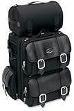 Internal office organizer and lockable zipper pulls and buckles. Constructed of UV-, water-, and weather-resistant 1200-denier SaddleTuff and SaddleHyde panels. Dimensions: 20"W x 21"H x 12.5"D (expands to 15"D); measures 3,200 cubic inches, expands to 3,500 cubic inches.