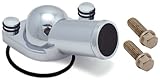 This chrome water neck has a thermostat housing and includes an O-ring seal, billet bolt caps, and bolts.