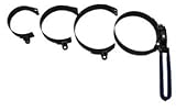 Covers all filters ranging from 2-3/8" to 4-7/16". Includes four 1" wide bands that snap into a swivel handle.