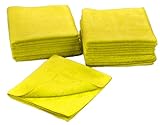Oversized 16 X 16 in. yellow microfiber towels.These ultra soft microfiber towels will lift and trap dirt and moisture, leaving a clean, dry and polished surface. They are safe to use on all surfaces around the home, car, RV, motorcycle, aircraft, or boat. The towels are environmentally beneficial in that they require little to no water, reducing waste. In addition, these microfiber towels are especially adept at cleaning without the use of chemicals. Use them dry, and they will work like magic without scratching, linting, or streaking. Use them wet and they will absorb 7 to eight times their own weight in water.Microfiber works by attracting dust and other contaminants like a magnet and trapping them within its very fine microscopic filaments. The fibers are so tiny they are able to remove 99 percent of bacteria effortlessly. Due to their superior quality, these microfiber towels can be washed and reused hundreds of times.Care instructions: Machine wash. Tumble dry low, and do not iron. Do not use fabric softener as this would clog the microfibers and reduce performance. Do not use chlorine bleach. Wash with other non linting materials to maintain proper dirt-gripping properties.