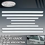 Picture is for Illustration purpose only (The Actual Chrome Window Trim you order will be a Beautiful Mirror Finish and Specific to Your Vehicle's Make Model & Fit) This Brand New Chrome Window Trim set is made and manufactured in the USA with the highest grade Stainless Steel on the market! It has smooth beveled edges and is polished to a brilliant mirror shine. Each Chrome Window trim piece is formed to fit over your original window trim with precision. Each Window Trim piece PERFECTLY installs over your existing window molding trim with 3M's best automotive-grade adhesive. It only takes 15 minutes to install, with an easy Peel & Stick Installation. No modification or tools needed. Once installed, it's VERY secure. Get the continuous shine of Stainless Steel for a fraction of the cost!