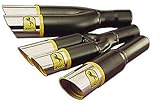 Designed and manufactured in the USA by PaceSetter, a leading provider of quality made, affordably priced performance products since 1972. These MONZA Exhaust Tips by PaceSetter are the best-known polished and triple-process chrome plated tips around and they are the perfect ending for any exhaust system. MONZA Exhaust Tips include the classic Dual 2-1/2" and Dual 3" outlet Tips with resonators and single 3" outlet with resonators for all applications. The resonators are designed to tone down even the sharpest exhaust notes. This tip has Dual 3" outlets and 17" overall length and will fit a 2-1/2" tailpipe.
