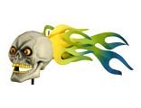 This Flaming Skull Antenna Ball Topper is wicked cool! Cool blue and yellow flames from behind the skull make this awesome topper unique and easy to see. This skull also has a moveable jaw. Made of durable plastic, not for use with retractable antennas. Find this and more treasures at http://www.amazon.com/s.html/002-2627897-3651218?ie=UTF8&index=merchants&me=A1FS99TXK5K04A