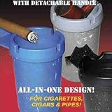 Drop cigarette in and it extinguishes itself in seconds. Use the Smokeless Ashtray as a holder or ash container for cigars and pipes. No more smoldering, smelly ashtrays. Removable handle for use on the door frame of cars, trucks, RVs, and boats, or remove the handle and place in any cup holder. The Smokeless Ashtray unique design also serves as cigar or pipe holder. Smokeless Ashtray is designed to hold up to 25 cigarette butts. Once full, remove the lid and safely dispose of extinguished butts or ashes. The Smokeless Ashtray is also dishwasher safe!
