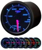 GlowShifts Black 7 Color Oil Temperature Gauge offers a unique combination of a high performance features including multiple backlit colors, a black face with a clear lens and color recall technology while still offering an affordable price. This model reads the engine's oil temperature between 100 and 300 degrees Fahrenheit, using an included electrical temperature sending unit. Each black faced gauge sports a red illuminated needle with a full 270 degree sweep of the entire gauge allowing maximum accuracy. GlowShifts ground breaking seven color LED technology allows the user to select a color of their choice to be displayed at anytime, as well as the choice of fast or slow color changing modes. The color recall technology allows the gauge to remember the previous color selected after the gauge has been powered back up. All Black 7 color Oil Temperature gauges come complete with a 1/8th npt male thread electrical oil temperature sender and full installation instructions. All products include a one year warranty and free technical support with each gauge.