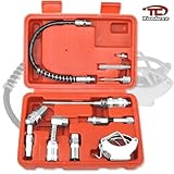 This Neiko lubrication aid kit comes with the following items: 1 (One) 1/2" Flexible hose with spring 1 (One) Grease injector needle, 1 (One) 1-1/2" Needle nose adapter, 1 (One) 4" Needle nose adapter, 1 (One) Grease gun adapter, 1 (One) Grease gun coupler, 1 (One) Oil gun clamp, 1 (One) heavy duty grease gun coupler, 1 (One) 90 degree swivel grease coupler, 1 (One) 360 degree swivel grease coupler