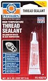 Permatex High Temperature Thread Sealant lubricates threads for easy assembly and disassembly and locks and seals threaded fittings. Resists leakage, vibration loosening, moisture, hydraulic fluids and diesel fuels and won’t shred or wear like Teflon tape. Parts may be repositioned up to 4 hours after application. Temperature range from -65 degree fahrenheit to 400 degree fahrenheit.