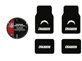 Feel the team spirit of the NFL football season! Support your team in your car with the NFL Set of 4 San Diego Chargers Plush Thick Carpet Floor Mats and 1 Steering Wheel Cover! These floor mats are heavy duty plush thick pile carpet floor mats with licensed NFL Logo. Embossed logo makes the design stand out! The backing is made from nibbed PVC that prevents sliding and shifting. There is no better way to protect your vehicle's floor while having a bit of fun. Official licensed NFL team logo steering wheel cover is made from with rubber base to provide a secured grip. Smooth PVC layer is then sewed on top of the rubber base for comfort. Team logo is embossed onto PVC with anti-fade coloring process so it will never peel or became discolored. Foam cushion is lined between the PVC and rubber for additional comfort. Most importantly, your hands no longer have to endure the burning or freezing steering wheel. The perfect gift for anyone that loves the Chargers team! **Floor Mats Dimensions - Front: 26" x 17", Rear : 17" x 13".** **Steering wheel cover fits most standard size steering wheels (14.5 - 15.5 inch.)**