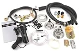 The kit comes with a high-speed pump to drain the oil, an engine block adapter, an remote filter adapter, flexible tubing, and installation hardware.