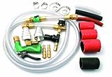 This kit will outperform other more expensive units. Entire flush job will take only 5-10 minutes, working at 15 PSI reverse flow. It will flush water first until clean, uses air to blow out the entire system, plus can check system pressure, check for stuck thermostats and can flush heater cores and free plugged cores. includes 6 foot hose assembly with quick disconnect, regulator assembly, 2 aluminum step adapters, water nozzle with quick disconnect, 2 brass heater hose adapters, 7 hose pieces and hose clamps. Packed in a blow mold case
