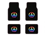 Reminisce about the days of love, joy, and peace! Heavy duty plush thick pile carpet floor mats with licensed graphic design. Embossed logo makes the design stand out! These floor mats feature logos on both front and rear floor mats! The backing is made from nipped PVC that prevents sliding and shifting. There is no better way to protect your vehicle's floor while having a bit of fun. A great gift idea for the lovers of peace and the 60s! **Dimensions - Front: 26" x 17", Rear : 17" x 13".**