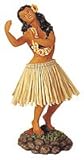 Hula Girl in Dancing Pose. She is sculpted by an artist and hand painted with detail. She wears a natural hula skirt with a lei around her neck. Place on your car dashboard and watch her hula. Measures 7" tall.