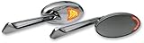 Front amber LEDs can accent front turn signals and running lights; bright red LEDs on the outer rim of the mirrored side can accent rear turn signals