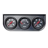 This triple gauge kit gives high performance with a great racing look. The kit includes a mechanical oil/water temperature gauge, an electrical voltmeter, and a mechanical oil pressure gauge. It comes with a 2-in black face dial with white numbers and a red pointer that adds style and readability to its look. It has 12-volt internal lighting and is designed for negative ground systems. It includes 72-in capillary tubing with 5/8-in national pipe thread and 1/4-in, 3/8-in, and 1/2-in adaptors. It includes lighting, mounting hardware, and 72-in nylon tubing with 1/8-in and 1/4-in national pipe thread fittings. It requires a hook-up wire for the voltmeter.
