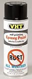 VHT SP652 Satin Black Epoxy All Weather Paint is a one step epoxy coating which does not require use of primer. It has been formulated to give the appearance of a baked-on finish. It provides a porcelain-like finish that is chemical, corrosion, rust and salt resistant. Careful preparation is essential to insure proper adhesion. VHT epoxy weather paint is part of a multi high performance coating system. The coating system products consist of paint and clear coat. VHT epoxy weather paint dries to the touch in 30 minutes and completely over night. No special curing is necessary. Application instructions are also printed on each can.
