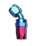 The Edelbrock/Russell Anodized Full Flow 45 Degree Swivel Hose End features a unique taper design that provides straight through connection with easy alignment upon assembly eliminates loose pieces of rubber within the flow area. The stainless steel retaining pin secures elbow to main hose end body that allows adjustability after assembly.