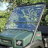 Bushwacker Enclosures Lexan Windshield For Kawasaki Mule 4010 - These Lexan windshield for the Mule 4010 is truly top of the line. They are hand crafted for a precision fit. The Lexan windshield for the 3010 is a split windshield to allow easy access to the front storage area. ***Three way design allows rider to enjoy a full windshield, top only, or bottom only. ***All Bushwacker windshields are made of 1/4" Lexan. The 1/4" will NOT bow at high speeds. ***Bushwacker uses the best clamping system available... Quick Connect Clamps. The Quick Connect Clamps make installation a breeze. After installation, if you ever need to remove your windshield, just unscrew the knob bolts. The clamps stay on the rollbar for easy re-installation. They use a total of EIGHT clamps for incredible stability. (They've hauled a 3010 with their windshield on at 60 miles an hour with ZERO bowing!!) ***Bushwacker lines the bottom and side of the windshields with a heavy duty rubber molding. This prevents any rattle during your ride. ***The windshield comes with installation instructions to make the install easy.