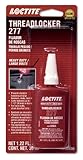 Loctite 277 Red Large Threads thread locker Bottle - 36 milliliter features a thread locker 277. It has large threads. It is a red high strength adhesive for locking and sealing large bolts and studs.