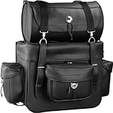 This will be a great addition for your motorcycle travels. This large touring pack is great for extra storage while hitting the open road. The pack can be released quickly. It contains rain cover, rivets and conchos.