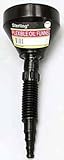 This is a black plastic oil funnel with detachable flexible spout for hard-to-get-to filler openings. Funnel can also be used as straight spout funnel. Packaged with a sticker label and UPC. Measurements: 7 1/2" funnel 4 3/4" diameter and 15" long when spout is attached.Available in a pack of 24